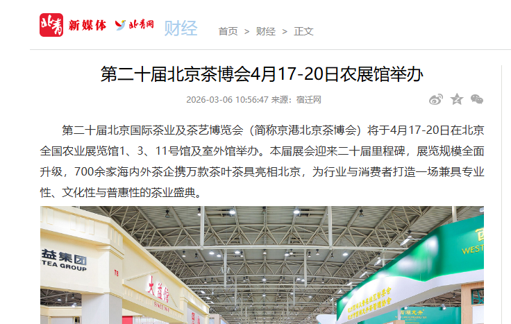 第十九届京港北京茶博会9月15日圆满闭幕25-09-15第三天精彩直击!万人评茶巅峰对决、茶席雅韵惊艳全场,明日收官福利速囤!25-09-14“边评边比”实时可见分数!万人评茶邀请赛秋季决赛点燃第十九届京港北京茶博会25-09-14填第19届京港北京茶博会观众问卷,抽奖送好礼!老班章茶饼、坦洋工夫红茶、茉莉花茶等你拿25-09-17梵净山茶,京彩绽放!铜仁“梵净山茶”系列产品惊艳京港北京茶博会25-09-14从茶末到精品:叶羽晴川老师携“晴川泡法”亮相京港北京茶博会25-09-14双节茶礼提前囤!京港北京茶博会第二天人气爆棚,文化雅集与消费热潮共绘秋日茶韵25-09-13茉香茶韵漫京华!福州茉莉花茶以“双世遗”点亮京港北京茶博会25-09-13紫阳富硒茶亮相第十九届京港北京茶博会并成功举办专场推介会25-09-13第十届亚太茶茗大奖颁奖仪式在茶博会上举办25-09-13第十九届京港北京茶博会9月12日开幕脱贫地区茶品牌成焦点25-09-12安顺好茶香溢京城,黔中茶韵引投资热潮 ——安顺市茶叶品牌(北京)专场推介会成功举办25-09-12