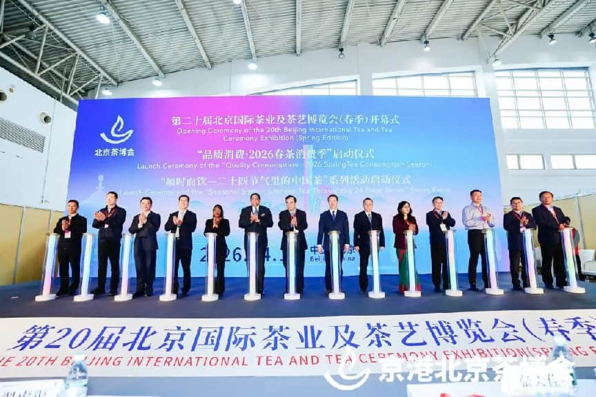 今日上午,全国农业展览馆 11 号馆内掌声四起,2026 欠发达地区茶叶品牌推介会暨第二十届京港北京茶博会开幕式,在这里重磅启幕!中国农业国际合作促进会名誉会长、中国农业科学院原院长翟虎渠,中国农垦经贸流通协会理事长、农业农村部原总畜牧师张天佐,全国农业展览馆党委书记刘子忠,斯里兰卡驻华大使马金达・贾升和,加纳驻华大使馆贸易投资公使鲁比·特塔,尼泊尔驻华大使馆经济公使帕巴提・艾瑞尔等领导嘉宾、驻华使节及展商代表齐聚一堂,共同见证 “北方茶业风向标” 二十届的里程碑时刻。本次开幕式由中国农业国际合作促进会茶产业分会会长李永生主持。