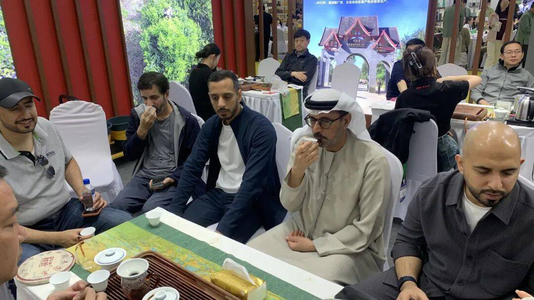 今日下午,阿联酋驻华大使侯赛因·伊卜拉欣·哈马迪阁下、阿联酋驻华使馆副大使哈立德·沙赫等一行来到京港北京茶博会,现场品鉴多款中国好茶、赏玩精品茶器,对中国茶的醇厚风味与东方器物的美学展现出浓厚兴趣,并现场选购茶礼、茶器。