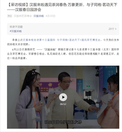 汉服来啦公众号:【采访视频】汉服来啦遇见茶润春色·万象更新,与子同袍·茗动天下——汉服春日园游会